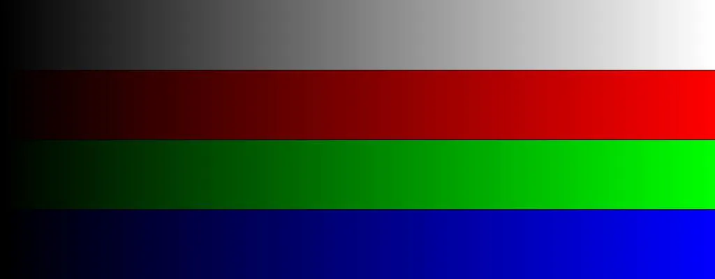 Color distribution for greyscale, red, green and blue channels. In all cases, the left side is 0 and the right side is 255. If you want to see the actual colors instead of just grey images, you need to retain all three channels and set the values on the other channels to zero. For example, to get the red component, set the green and blue channel values to 0, as shown below: